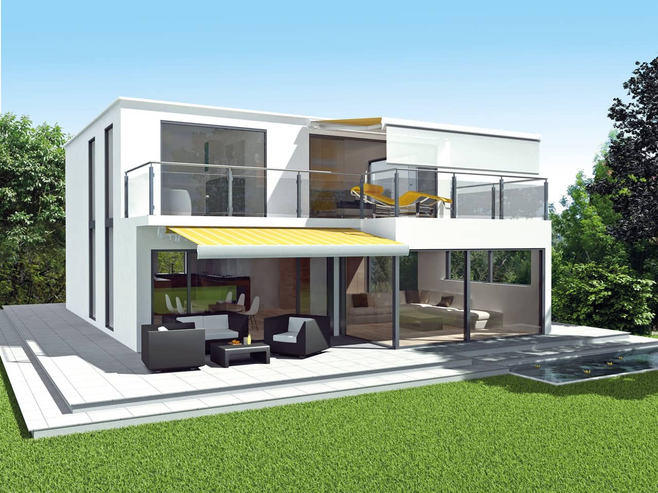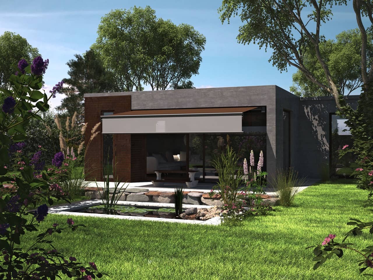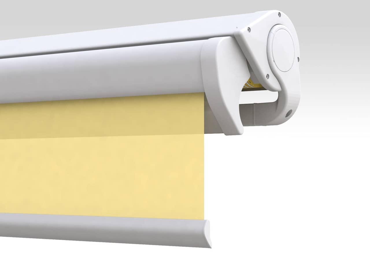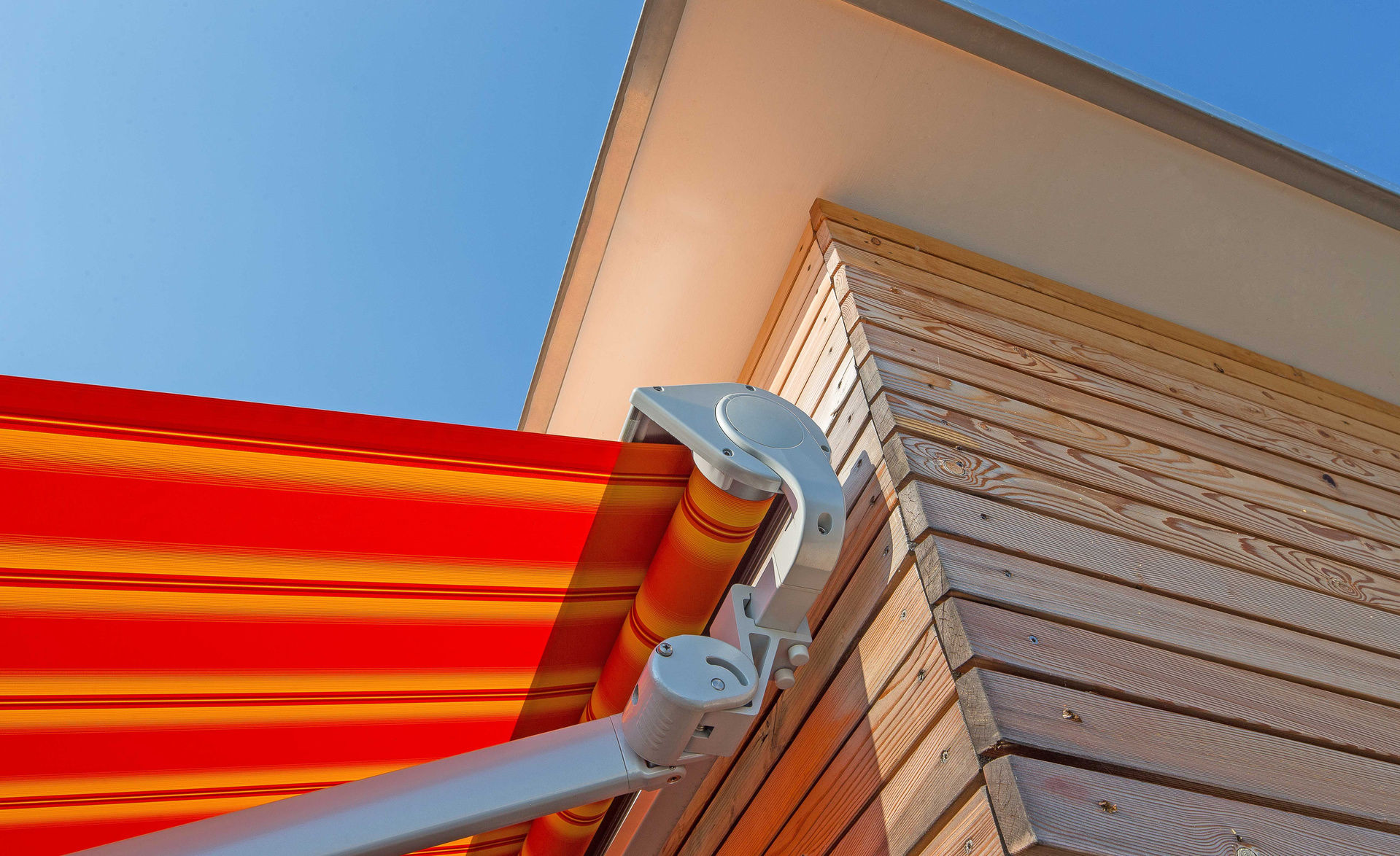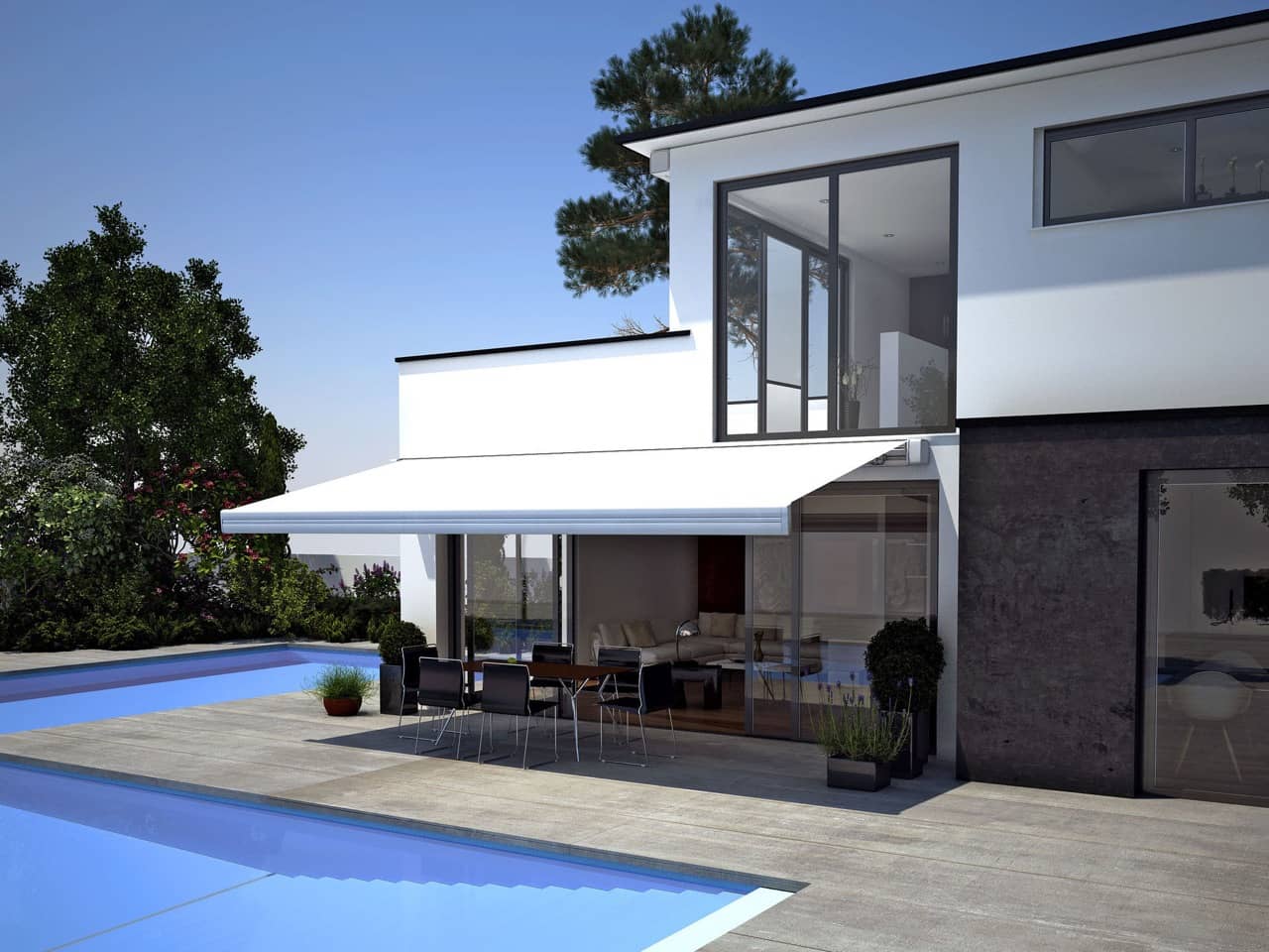 Die ERHARDT Q gibt es serienmäßig mit Motorausführung. Optisch hebt sie sich durch das moderne, eckige Bauhaus-Design von den anderen Markisen hervor.