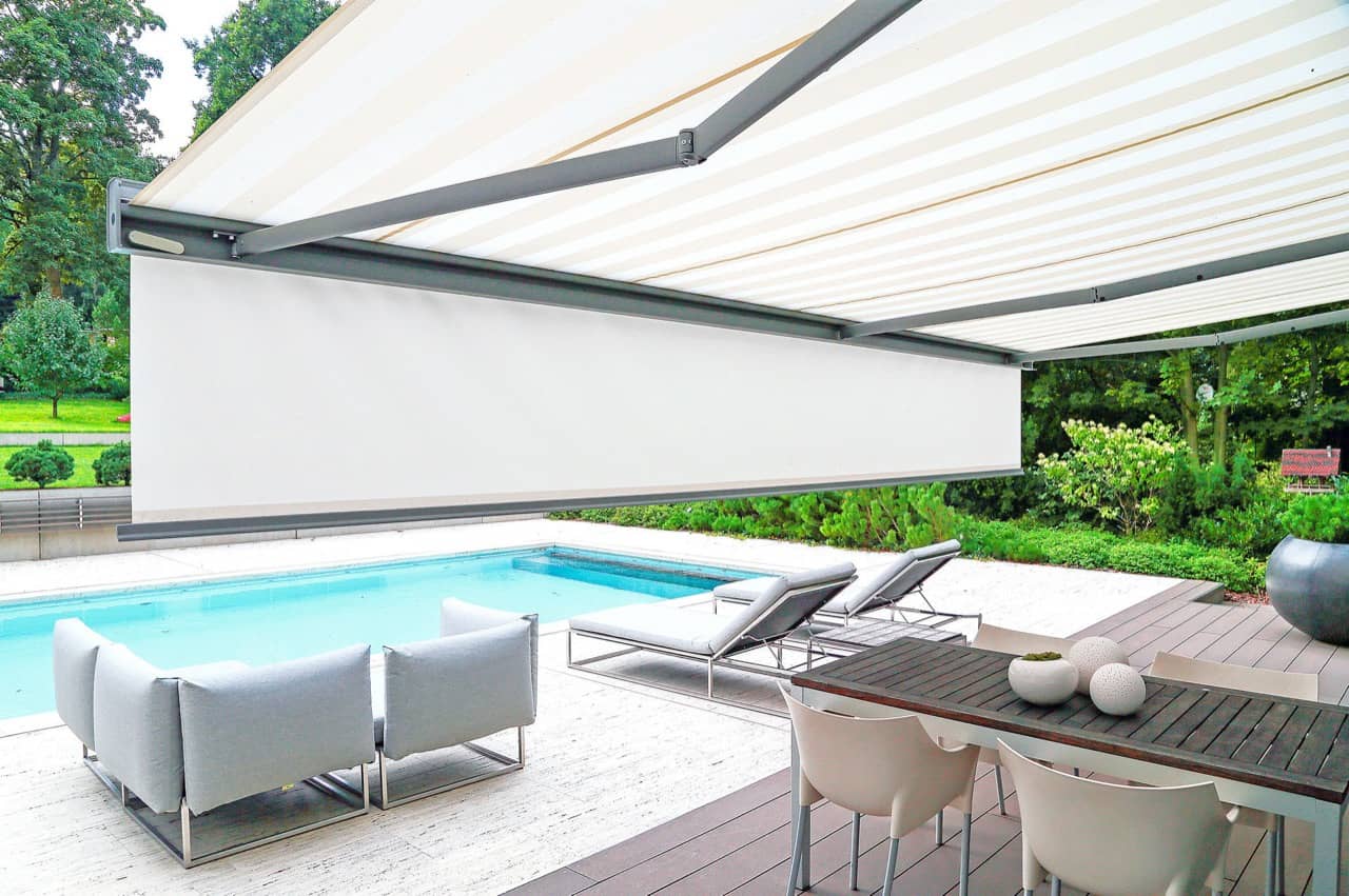 Beide Ausführungen sind bis zu den Maximalmaßen 700 x 400cm (Breite x Ausfall) oder als besonders stabile L-Version für mehr Tiefe bspw. 250 x 400cm erhältlich. Außerdem haben Sie die Möglichkeit zu einer Doppelmarkise um auch bei tiefstehender Sonne einen optimalen Blendschutz zu erhalten.