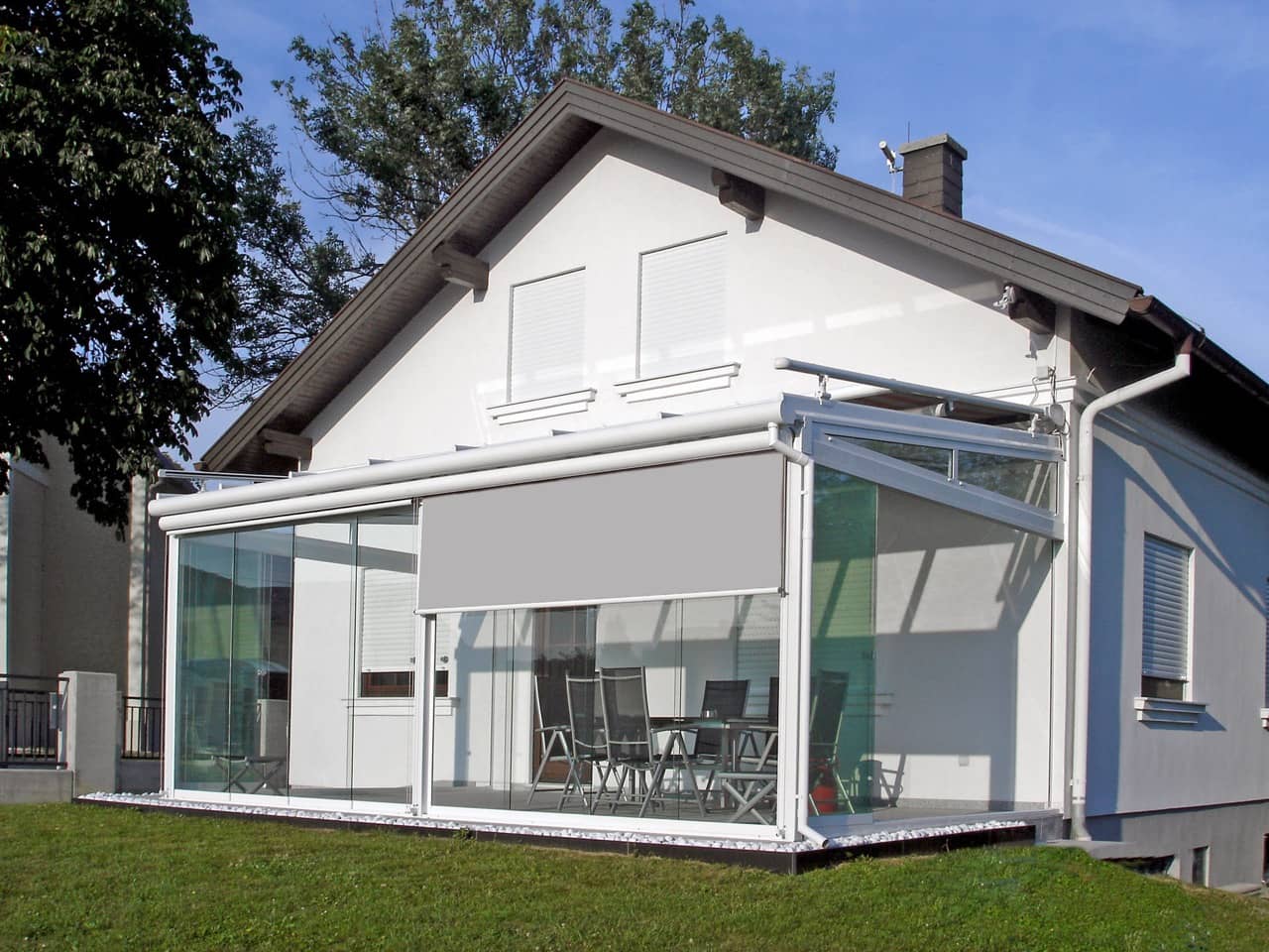 - Mischung aus Senkrechtmarkise und Ausfallmarkise