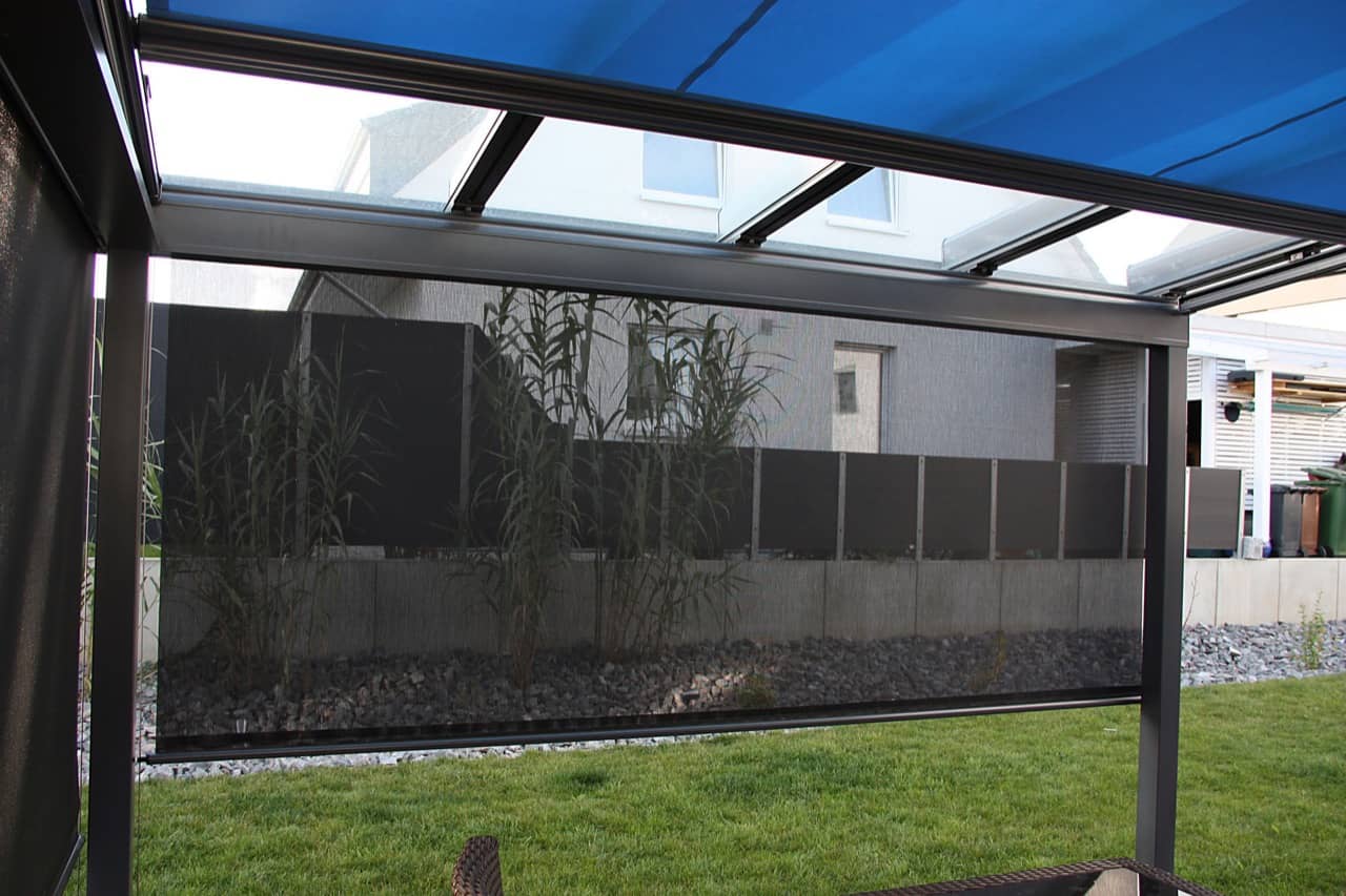 Durch das angeschweißte Reißverschlusssystem entsteht kein störender Lichtspalt zwischen Markisentuch und Führungsschiene. Daher ist die ERHARDT Z deutlich stabiler und eignet sich auch ideal bei windigem Wetter.