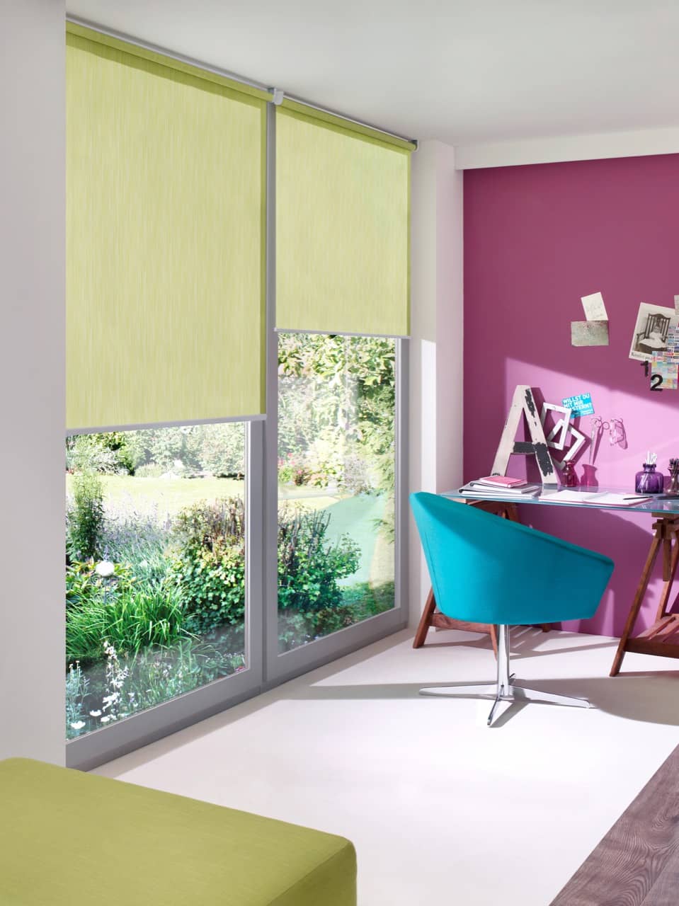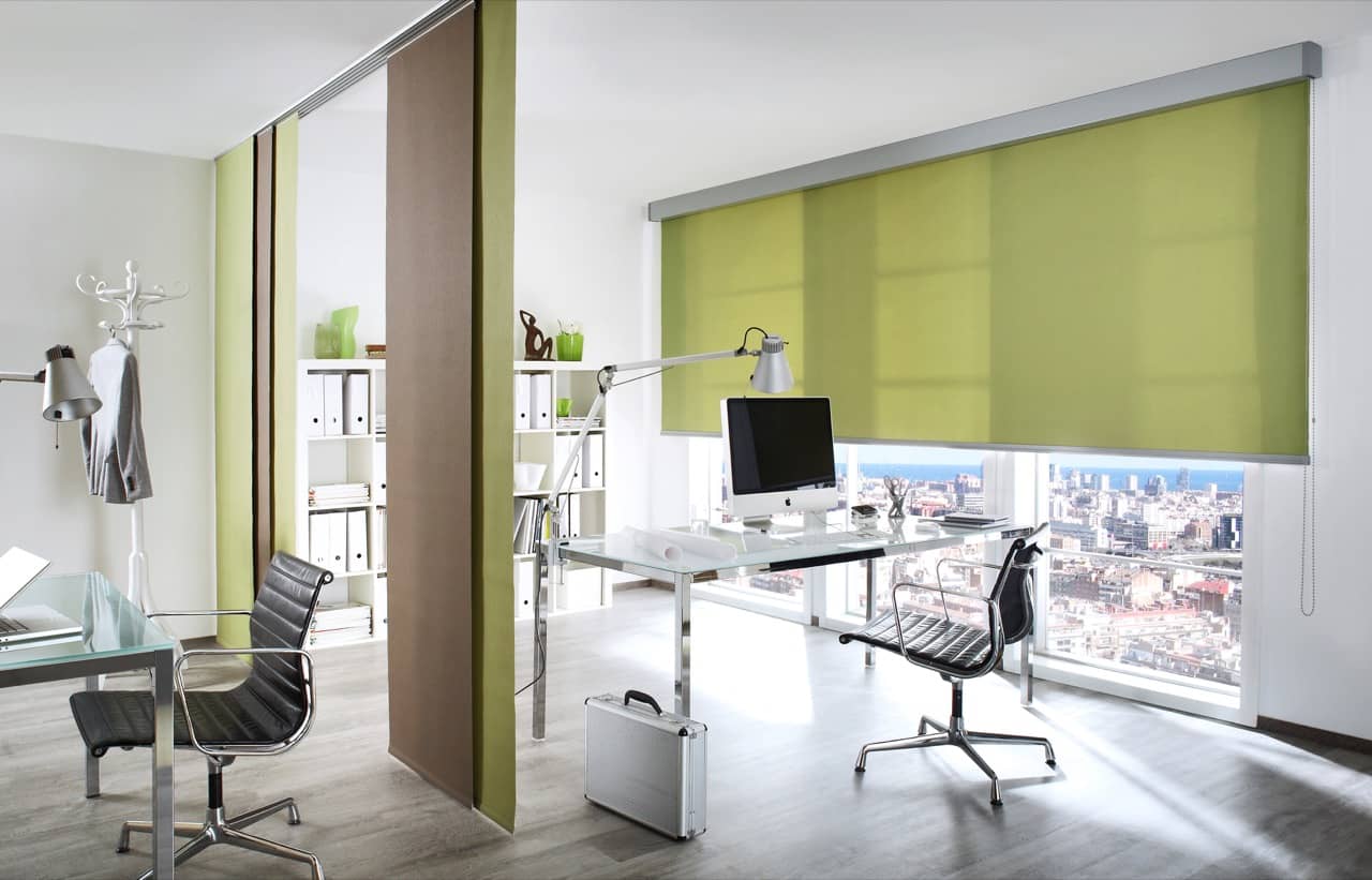 Auch als Blendschutz am Arbeitsplatz lassen sich Rollos aus Spezialstoffen perfekt einsetzen.